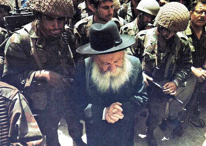 O rabino Zvi Yehuda Kook com as forças israelenses no Muro das Lamentações, pouco depois de as forças israelenses o terem capturado em 1967. (Wikimedia Commons/Domínio Público)
